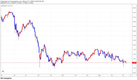 【メキシコペソ円今週の予想(3月10日)】*予想レンジ:7.10円~7.50円。*メキシコペソ円は、米国の関税が延期されたものの、今後の交渉次第では吉···