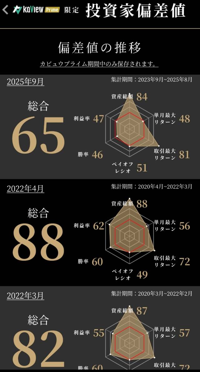 投資家偏差値測定。3年前と比較。