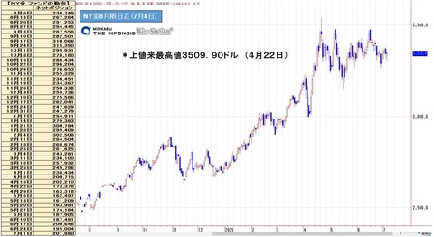 【NY金は保ち合い続きそう】*先週のNY金(8月)は、米財政赤字拡大や関税交渉停滞への警戒感から安全資産への資金逃避から買われたものの、週末···