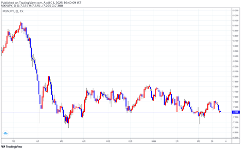 【メキシコペソ円今週の予想(3月31日)】*予想レンジ:7.20円~7.60円。*メキシコペソ円は、米国がもたらす関税に翻弄される展開になりそうだ。ま···