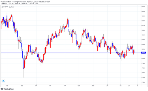 【南アフリカランド円今週の予想(3月31日)】*予想レンジ:8.00円~8.40円*今週のランド円は、米国の関税発動が迫る中、世界的なリスクオフモード···