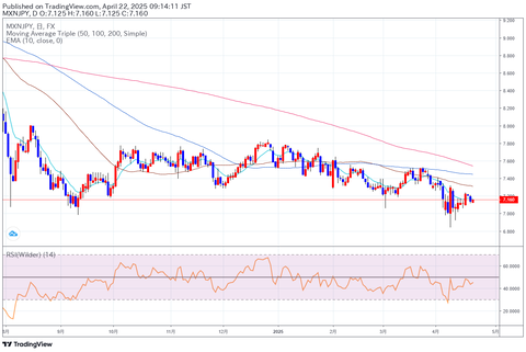 【メキシコペソ円今週の予想(4月21日)】*予想レンジ:6.90円~7.40円。*メキシコペソ円は、保ち合いが続きそうだ。トランプ大統領が先週、「相互···