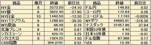 【7月24日海外市況】