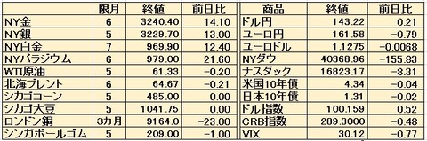 【金は連日の最高値更新で、調整場面を迎えるか】*先週のNY金(6月)は、トランプ政権の高関税政策がインフレと景気減速を招くとの警戒感が高まり···