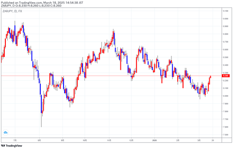 【南アフリカランド円今週の予想(3月17日)】*予想レンジ:7.95円~8.25円*今週のランド円は、経済回復が鈍いことから上値の重い展開が続きそうだ···