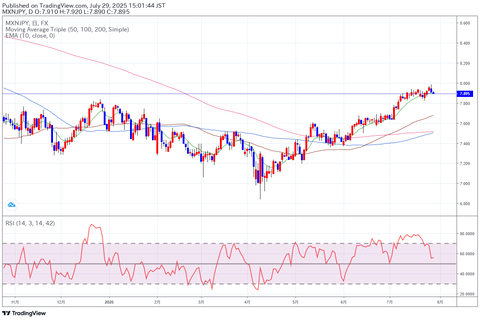 【メキシコペソ円今週の予想(7月28日)】*予想レンジ:7.80円~8.20円。*メキシコペソ円は、底堅い経済を背景に押し目買いが継続しよう。5月の鉱···