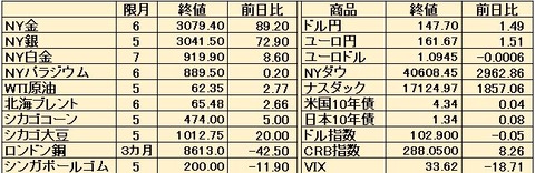 【6月30日海外市況】