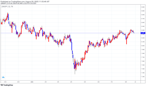 【南アフリカランド円今週の予想(8月18日)】*予想レンジ:8.3円~8.5円*今週のランド円は、押し目買いになりそうだ。南アフリカ経済は低成長だが···