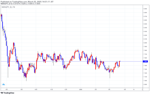 【メキシコペソ円今週の予想(3月24日)】*予想レンジ:7.20円~7.60円。*メキシコペソ円は、関税問題と利下げ見通しから上値の重い展開になりそう···