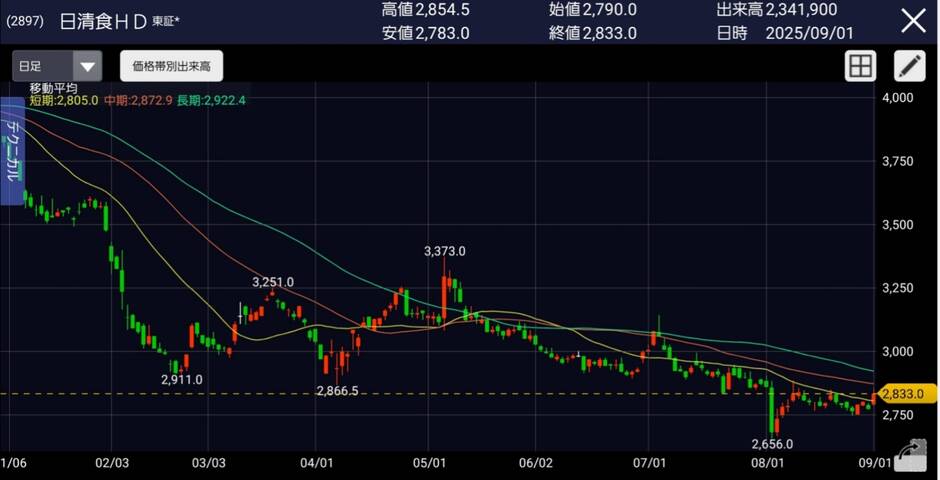 今日は日経平均は下がっていましたが、私の保有しているある銘柄は上がっていました。その銘柄は日清食品ホールディングスになります。今日は短期の移···