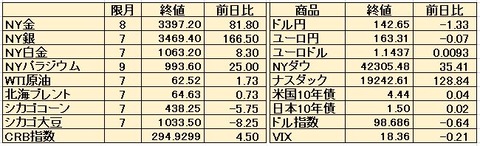 【7月30日海外市況】
