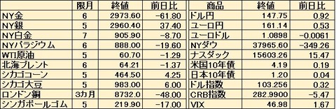 【6月10日海外市況】