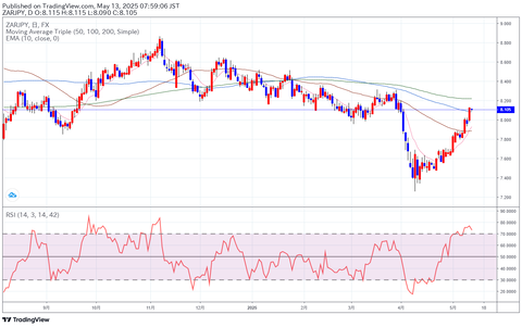 【南アフリカランド円今週の予想(5月12日)】*予想レンジ:7.80円~8.10円*今週のランド円は、保ち合いとなりそうだ。米中関税協議の進展を受けて···